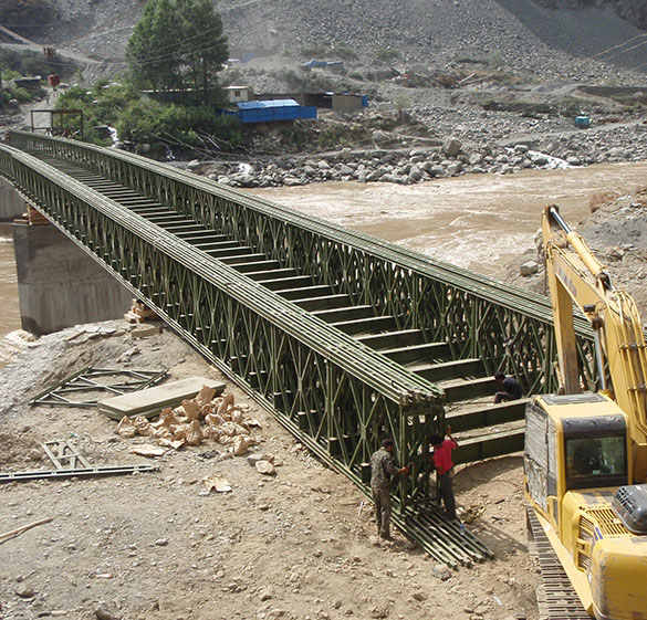 公司是中國鋼結構協會橋梁結構分會會員單位、中國鋼結構協會焊接分會會員單位的企業。公司現有固定資產5000多萬元,年產值突破億元,是國內專業生產貝雷鋼橋較大企業之一。公司擁有貝雷鋼橋研發專業工程技術人員20余人,擁有能指導、執行行業標準的人才和國內先進的制造工藝。目前已開發出各種高抗彎、高抗剪貝雷桁架梁新產品,滿足公路—I級、城—A級、HS25(美國荷載標準)、HA(英國荷載標準)等荷載要求。經實際運用,為大型工程施工中的超汽60、掛…